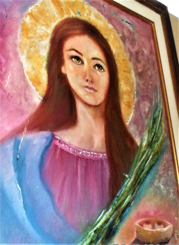 Любовь всегда предполагает чудо. В моём случае оно состояло в том, что с первого взгляда на картину я почувствовал Что? Душу святой Лузии? Чувство, с которым художница писала картину?.. Скорее всего некую святость, непорочность, которые художнице по внушению свыше удалось передать с помощью её искусства, а мне почувствовать: скромность, смирение, отрешённость от обыденного Это были как раз те черты, видеть которые в окружающих мне бы очень и очень хотелось, но Да.., вы поняли.