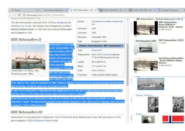 И чтобы Вам не тратить время на перевод, предлагаю почитать уже готовый. Он немного корявый, но смысл написанного понять можно.«Яхта «Гогенцоллерн»