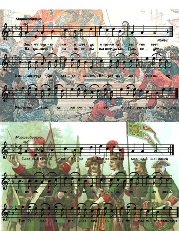В конце XVIII века был создан гимн-марш, потеснивший музыку преображенцев. Его появление связано с блистательной эпохой побед во времена полководца Александра Васильевича Суворова и флотоводца адмирала Фёдора Фёдоровича Ушакова. 11 декабря 1790 года русские войска под предводительством Суворова совершили беспримерный подвиг: взяли считавшуюся неприступной турецкую крепость Измаил.