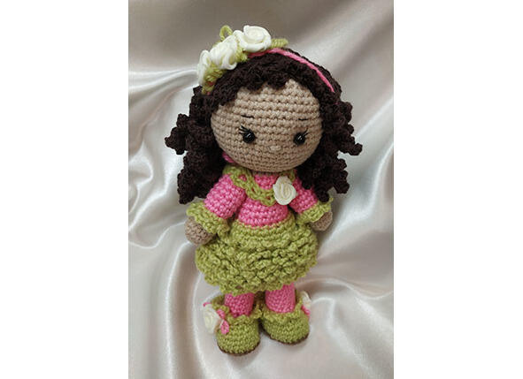 Размер куколки напрямую зависит от толщины выбранных нитей и толщины крючка. На моих материалах куколка получилась ростом 21 см.