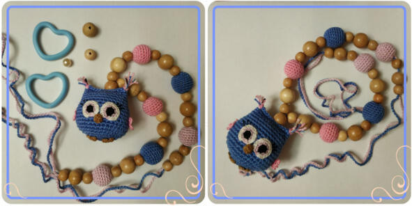 собирать бусины и вязаный кулон (совушку) в бусы.