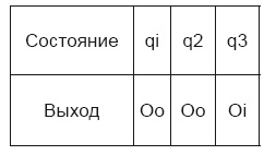 Сигналы на выходе, единственно видимые извне проявления внутреннего состояния (загорание лампочки), задаются таблицей: