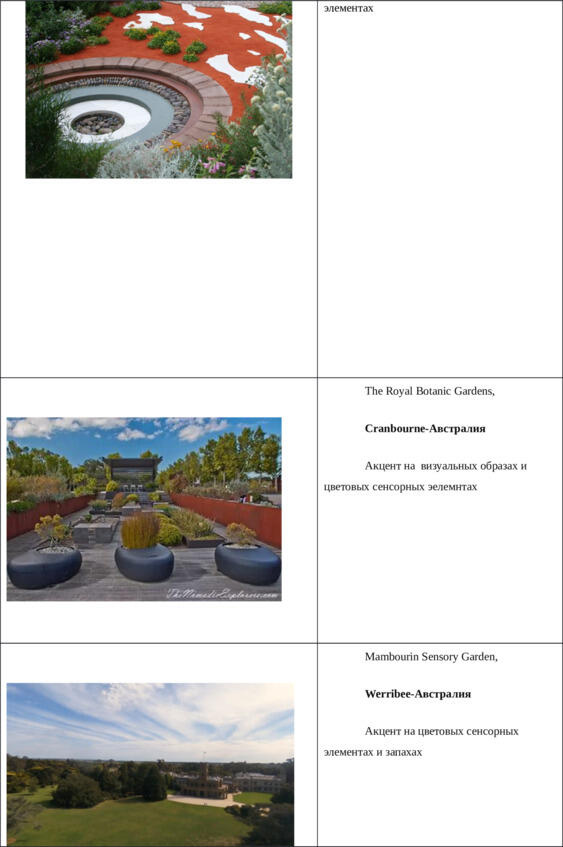 Количество сенсорных садов в мире большое и интерес научного сообщества к вопросам создания и использования в педагогике и медицине сенсорных садов растет.