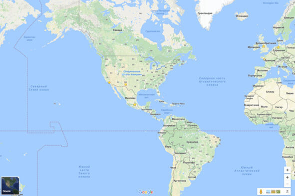 Рисунок 2. Карта сенсорных садов мира (Америка)