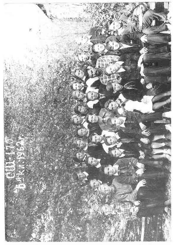 Верх. ряд: 1. Осинцев Коля. 2. Ковтун Рая. 3. Суркова Рая. 4. Сон Римма. 5. Иванова Алла. 6.?7. Старченко Галя. 8.? 9. Дрокина Вера. 10.?11. Куркотов Витя. Сред. ряд: 1.Левковский Вова? 2.? 3. Тарасова Тоня. 4. Глазова Анастасия Измайловна. 5. Шуляк Павел Михайлович. 6. Севостьянов Дмитрий Иванович. 7. Саватеев Миша. Ниж. ряд: 1. Брёхов Толя. 2. Кучеренко Гена. 3. Мирошниченко Гриша. 4.? 5. Григоршева Клава. 6. Бутырин Витя. 7. Зимина Лора. 8. Шемелин слава? 9. Филатов Боря. 10. Сафронов Слава. 11. Факитдинов Олег.