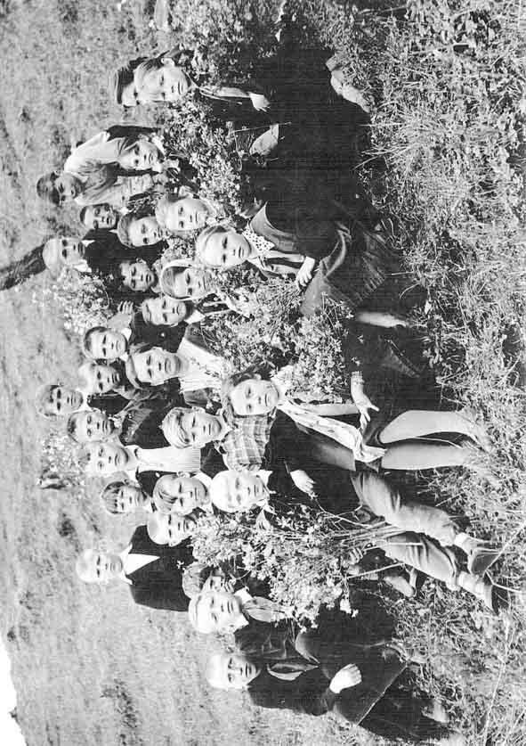 пгт. Известковый, 12.08.1965 год. Поход за посёлок. На переднем плане- слева Коцарь Валера,?Сафронов Володя, Мирошниченко Гриша, Саватеев Миша. На втором плане слева_Суркова Рая, Павленко Жаннет,? Зимина Лариса, Римма Сон, Иванова Алла, Ковтун Рая, Зимин Пётр. 12.08.1965 год. Фото «Смена-8м» автор Брехов А. И.