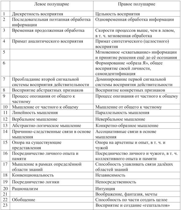 В общем смысле любые виды активности усиливают межполушарную асимметрию. Полушария обладают различными принципами и стратегиями обработки информации.