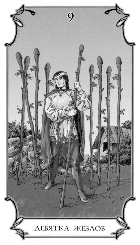 Сама по себе Девятка Жезлов это полоса препятствий. А его отношение к этому нужно смотреть по соседним картам. Именно они скажут, в чём суть препятствий.
