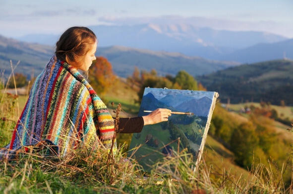 В руках несла мольберт и краски