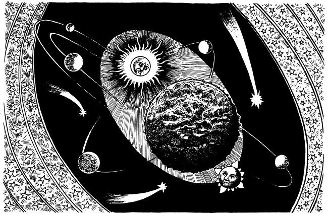 Платон, философ широчайшего диапазона, основал вблизи Афин, в местечке Академ, собрание ученых, где в спорах вырабатывались определения для всех существующих вещей. Отсюда берет начало и понятие «академия». В своем учении о мироздании Платон представлял Вселенную единой, вечной, живой и одухотворенной. Он изображал ее в виде восьми сфер, вращающихся вокруг центрального тела Земли. Первую сферу от Земли занимала Луна, вторую Солнце, дальше располагались Гермес (Меркурий), Афродита (Венера), Арес (Марс), Зевс (Юпитер) и Кронос (Сатурн). За ними сфера звезд. Все наименования планет по именам олимпийских богов были даны именно Платоном в греческом варианте. Позже возобладал римский вариант, принятый и в современной астрономии.