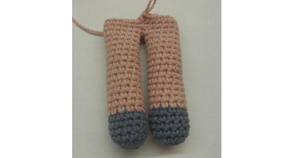 Ножки и туловище цельная деталь. Продолжаем вязать от второй ножки. В 1 ряду соединяем ножки вместе, в одну деталь.