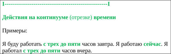 Группа характеризует действия несовершенного вида в будущем, настоящем или прошедшем, произошедшие на континууме (отрезке времени) в будущем, настоящем или прошедшем времени.