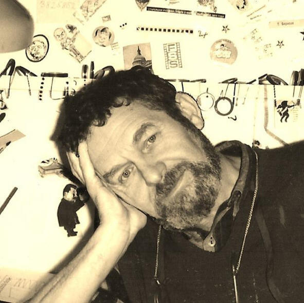 Он родился в Ленинграде в 1934-м году. В раннем детстве начал рисовать мелом на тротуаре. В эвакуации без конца рисовал войну, но не только танки-самолеты, но еще и портреты маршалов и генералов. Взрослые заметили, как он здорово рисует. А когда вернулись в Ленинград бабушкина сестра пошла работать на кукольную фабрику, и там ей рассказали, что в городе есть Средняя Художественная школа принимают туда с 12-и лет, надо сдать экзамен, но если поступит дают рабочую карточку. Кругом была послевоенная голодуха, и тетя, услышав про карточку, самолично отвела моего папу на экзамен. Папа сдал его на «отлично». И это решило его дальнейшую судьбу. После школы он поступил в Академию художеств, на графический факультет. Еще студентом начал работать для пионерского журнала «Костер», и в творческом объединении плакатистов «Боевой карандаш», и по окончании Академии был принят в Союз художников.