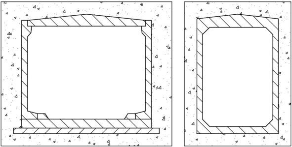 Также популярная конструкция коллектора. Выполняется как из готовых железобетонных секций, так и из сочетания стеновых элементов и плит покрытия.