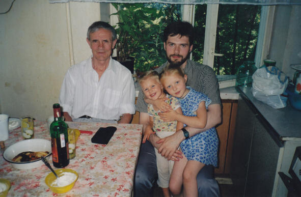 Август 2002г., Солнцево, с папой и старшими дочерьми, Настей и Соней