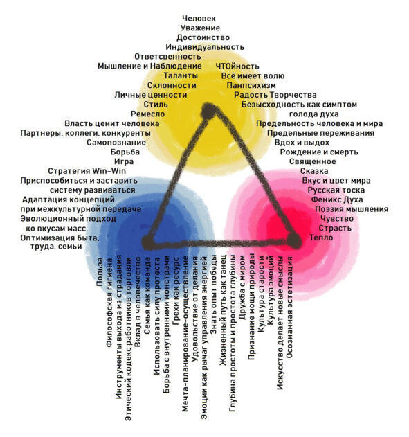 Эти три большие сферы, соединяясь друг с другом и плавно друг в друга перетекая, создают облако из опорных понятий.