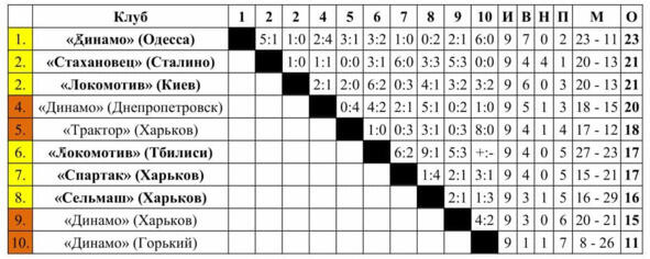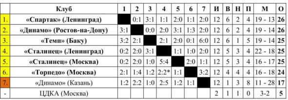 *Результат матча «Торпедо» (Москва) «Сталинец» (Ленинград) со счётом 1:3 аннулирован (переигровка 2:2)
