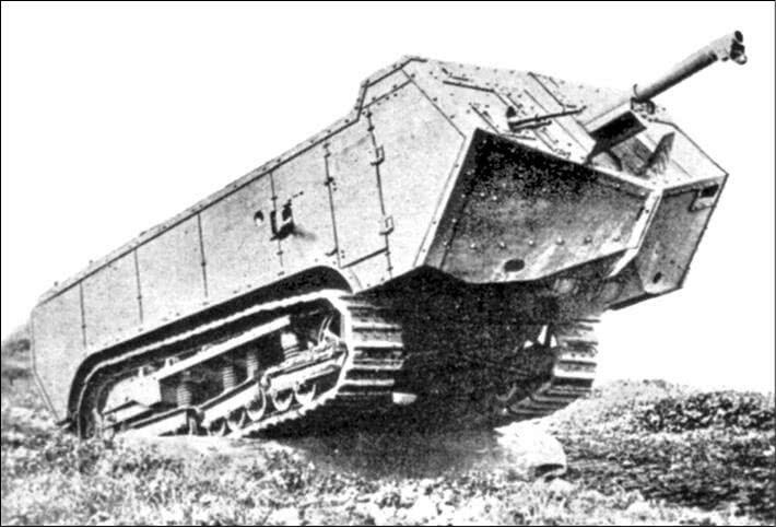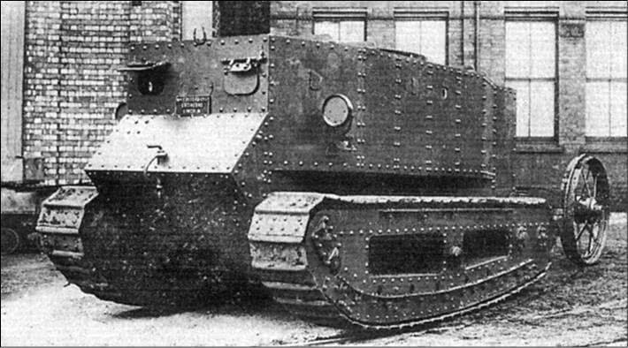 Тем временем во Франции Жан-Батист Эжен Этьен возродил идею Гюнтера Бурштына о бронированной боевой машине. Он возглавлял лучшее артиллерийское подразделение Франции. Орудия француза стреляли очень метко, но только с близкого расстояния. Тогда генерал решил, что орудия необходимо подводить настолько близко, чтобы иметь возможность стрелять по окопам противника. Но пушки были тяжелы и постоянно застревали в земле. Этьен захотел «завернуть» их в броню, оснастить гусеницами и двигателем. Но, как и довоенную идею Бурштына, концепцию француза отвергли.