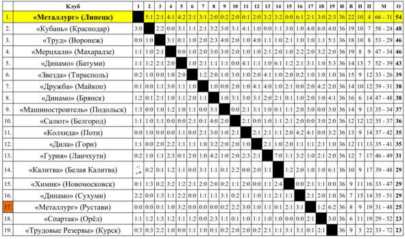 Система начисления очков: победа 2, ничья 1, поражение 0.