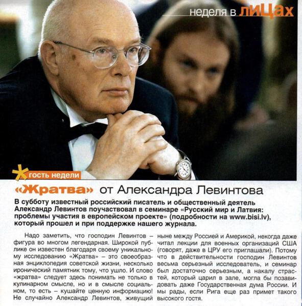 Публикация в рижском журнале «ЖЗЛ» после выступления А. Е. Левинтова в Риге в 2005 году