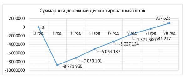 Рисунок 5. Суммарный денежный дисконтированный поток проекта