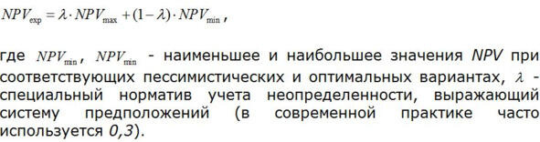 Наиболее простой тип неопределенности, когда величины характеризуются меньшими интервалами возможных значений. В этом случае применяется метод рассмотрения различных сценариев развития проекта. Расчет ожидаемого результатам проекта производится.