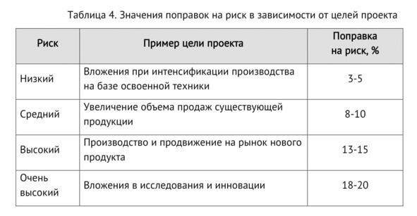 Премия за риск зависит от категории проекта, все рекомендации по ее значению можно рассматривать, как приблизительные.