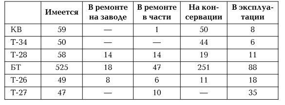 Второй момент, который обращает на себя внимание, это характер эксплуатации новой матчасти и распределение обученных водителей. Далеко не все танки постоянно эксплуатировались. Причем это не было прерогативой Т-34 и КВ. Такой же принцип исповедовался в отношении танков всех типов (см. таблицу).