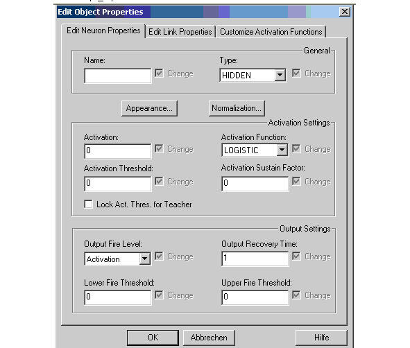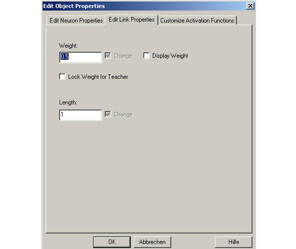 <Вид> <Показать ссылки> Если активирован, то ссылки отображаются на экране. В противном случае ссылки и порты подключения нейронов скрыты. Вы можете выбрать ссылки, только если они отображаются. Тем не менее, вы можете соединить нейроны всеми способами, которые не требуют ручных операций подключения, даже если ссылки в настоящее время не отображаются.