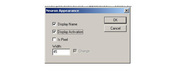 <Вид> <Показать индикаторы огня> Если активировано, то нейроны показывают желтую точку на своем выходном разъеме каждый раз, когда они запускаются (выдают сигнал <> 0).