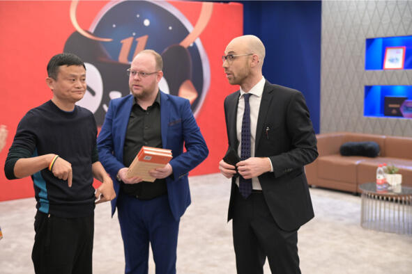 На фото слева направо: Джек Ма основатель корпорации Alibaba, Дмитрий Закон инвестор, продюсер и партнер Dimitri, Мастер Менталист Dimitri.