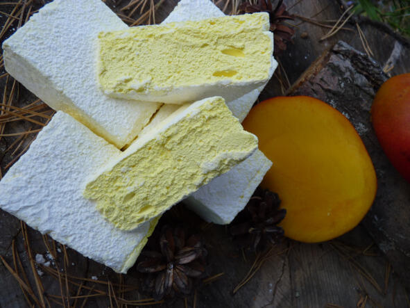 Разливаем на силиконовый коврик, посыпанный смесью для подпыла зефира, с высоким бортом. (или в любую форму с бортом, обтянутую пищевой плёнкой и посыпанную смесью для подпыла.)