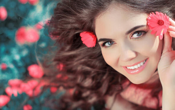 Изящны линии лица, шелк подбородка.