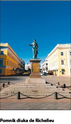 Na niewielkim placu, dzielącym Primorski bulwar, znajduje się pomnik diuka de Richelieu. Diuk de Richelieu był zarządcą miasta w latach 18031814. Przyjeżdżając do Odessy diuk de Richelieu zobaczył fatalnie wybudowane domy, szałasy, ziemianki, wojskowe koszary. W krótkim czasie przedstawił on plan rozwoju miasta polegający na zasiedleniu terenu ludźmi, zwiększenia handlu, rozwinięcia nauki i kultury. Zmienił Odessę na duży port handlowy, dzięki niemu powstało wiele ulic, wybudowano sobór, synagogę, katolicki kościół, teatr. W mieście wyrosły przepiękne drzewa, które stoją do dzisiejszego dnia. W 1814 roku powrócił do Francji, gdzie objął stanowisko premiera, które sprawował do śmierci.