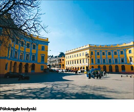Za plecami diuka znajdują się charakterystyczne półokrągłe budynki. W lewym przed rewolucją znajdował się hotel "Petersburski", w którym zatrzymywały się takie osobistości, jak Beliński, Bunin czy Ferenc Liszt. W czasach sowieckich znajdowały się w nim kasy pasażerskiej floty czarnomorskiej. W prawym budynku w XIX wieku mieściła się m. in. kancelaria naczelnika miasta, miejskie archiwum, a przed rewolucją znajdowała się siedziba sądu. Sądzono tutaj m. in. znanego atamana rewolucjonistę Grigorija Kotowskiego.
