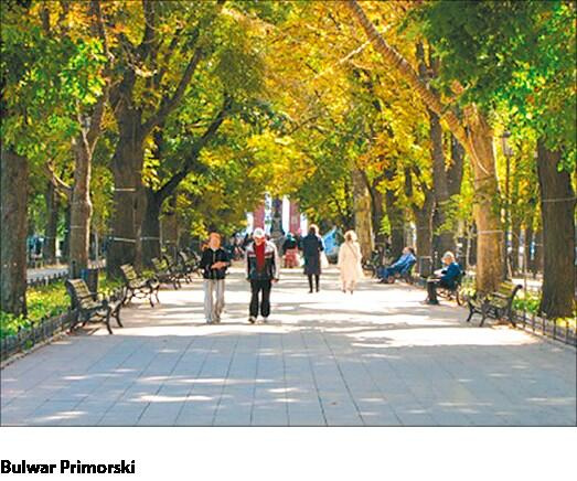Zanim opowiem o pomniku Puszkina, który dziwnym trafem stoi tyłem do budynku rady miejskiej, warto poznać historię Primorskiego bulwaru, którym za kilka minut będziemy kontynuować nasz spacer. Bulwar stanowi współczesną wizytówkę Odessy i znajduje się na urwistym brzegu. Jest to jedna z najpiękniejszych ulic miasta, miejsce spacerów mieszkańców Odessy oraz turystów. Bulwar Primorski miał wcześniej wiele innych nazw. Na początku był on Nowym bulwarem, potem Primorskim, a następnie stał się Nikołajewskim. Po rewolucji został nazwany bulwarem Feldmana, a po II wojnie światowej powrócił do nazwy Primorski bulwar. Prace budowlane na bulwarze rozpoczęły się w 1822 roku. W 1824 roku na czterech alejach zostało zasadzonych 454 drzew. Krąży legenda, że jedno z drzew posadził osobiście Aleksander Puszkin podczas swojego pobytu w Odessie. Rozkwit bulwaru rozpoczął się w okresie rządów kniazia Woroncowa. Ważnym warunkiem przy budowie kamienic wzdłuż bulwaru było zachowanie harmoniczności. Stoją one w rzędzie, który jest przerwany przez centralny plac z charakterystycznymi budynkami w kolorze ciemnożółtym. Na środku placu stoi pomnik diuka de Richelieu z rozciągniętymi pod jego nogami schodami Potiomkinowskimi.