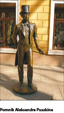 Pomnik Aleksandra Puszkina przedstawia poetę w krótkim fraku, pantalonach, w cylindrze, trzymającego w rękach laseczkę, z którą bardzo rzadko się rozstawał.