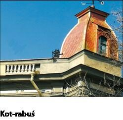 Wróćmy znowu na skrzyżowanie przy filharmonii i popatrzmy na dach kamienicy od strony ulicy Bunina. Widzisz siedzącego na dachu kota-rabusia, trzymającego w łapach skradzione parówki? Autor jest nieznany, jednakże oczywistym jest, że musiał on kochać koty, które stanowią żywy symbol miasta.