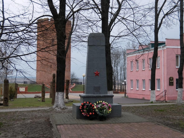 «Близ башни расположен сквер, в котором можно увидеть мемориальные сооружения, относящиеся к Великой Отечественной. Здесь захоронен полковник Пивненко, погибший в боях за освобождение Каменца». Источник: https://ts58.livejournal.com/34986.html