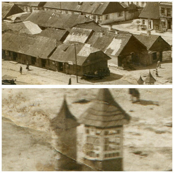 Каменец в прошлом. Еврейские буды и газетный киоск и тумба для объявлений. Источник: https://kamenets.by/intimnyie-podrobnosti-odnogo-foto/