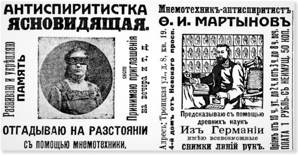 Реклама антиспиритических сеансов в петербургской газете 1910 года.83