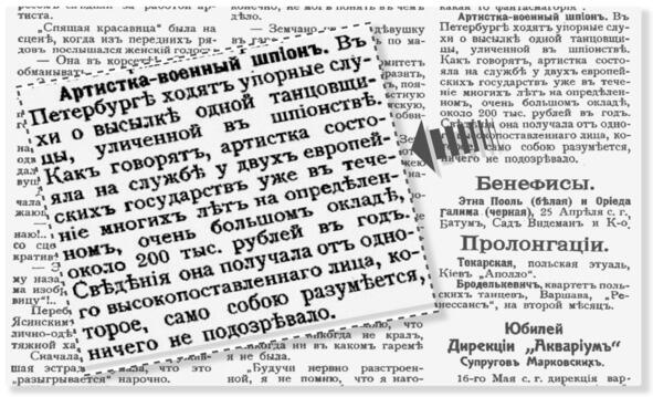 Артистка военный шпион. «Орган» 36, 1911 стр 3.