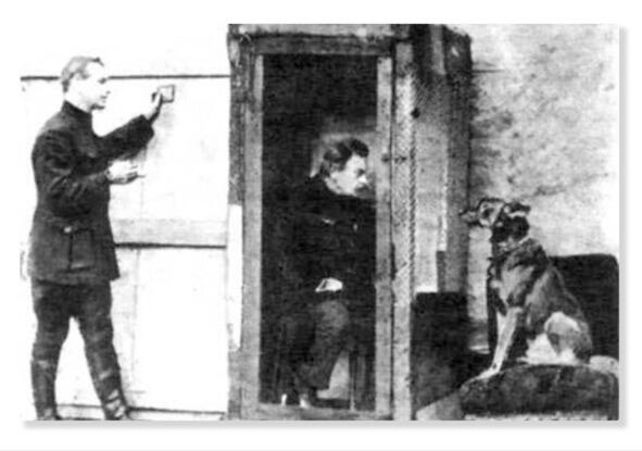 Телепатические эксперименты индуктора, находящегося в изолированном шкафу, с собаками проводились в московской Зоолаборатории Дурова.