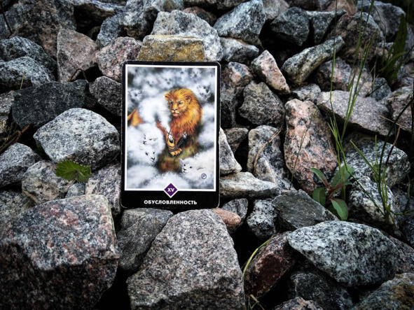 Руки держат различные инструменты как символ многовариантности событий, а также нескольких решений, подходов. По Ошо меч рассекает иллюзию. Змея омолаживает себя, сбрасывая старую кожу привычек, условностей. Инь-ян символизирует выход за пределы двойственности. Так и вы помните, что для благих перемен нужно сбросить оковы ограничений, пусть это болезненно. Приготовьтесь к непредвиденным переменам. Вариантов куда больше, чем один.