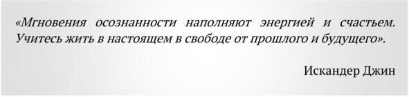 Попробуем разобрать этот момент немного с другой позиции, когда вы испытываете негативные чувства. Допустим, вы столкнулись с какой-то неприятной новостью: вам позвонила ваша подруга и сказала, что какая-то деловая встреча, которую вы очень долго ждали и которая могла принести вам какой-то успех в деятельности, к сожалению, не состоится. Что с вами происходит? Если вы находитесь вне ощущения настоящего момента, то вы теряете контроль своего внимания, которое перетекает в эпизод несостоявшейся встречи, застревая в нём. В результате этого залипания ваше настроение портится. Если же вы сохраняете осознанность и присутствуете в настоящем моменте полностью на чувственном уровне, то у вас в итоге появляется возможность ощутить саму жизнь здесь и сейчас.