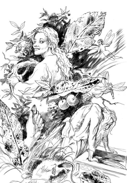 Гілка хитнулася; дівчина втратила рівновагу, намагаючись прикрити подолом кругле коліно: