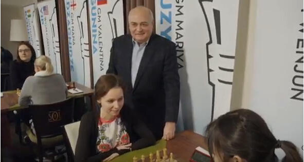 Надеюсь, Вы узнали этого человека, который всегда ходит в хорошем настроении, а плохого настроения у него и не бывает. Мария Музычук улыбнулась своему земляку и поддержала праздничный дух. Соперница Марии китаянка Вэньцзюнь. Конечно, ничего не поняла, так и осталась сидеть задумчивой не поднимая головы. Кто такой Михаил и чем он велик, ей об этом и не знать. Может и к лучшему.