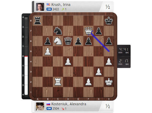 Она доминировала по всей доске и, казалось, плавно переходила в выигрыш, хотя был один момент, когда игра могла развернуться. 31.Kg2? Была ошибка. 31 Qh3 +! 32.Х1 Кф6!! фактически оставляет белых на грани катастрофы