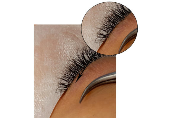 Слишком большой отступ. (Рис. 4) Не является грубой ошибкой, но такая работы будет выглядеть неаккуратно, т.к. натуральные ресницы могут отличаться по цвету с наращенными.