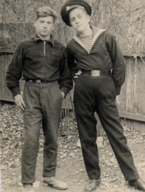 Вот так примерно я и рассуждал над чистой тетрадкой для сочинения. Но ведь все это не напишешь. А если напишешь, то последствия будут такими, что все обезьянки будут над тобой хохотать, а тигры ухмыляться в роскошные усы. Поэтому я написал коротко, но зато правильно, что хочу, мол, стать токарем, ударником коммунистического труда и победителем социалистического соревнования. И после исправления учителем погрешностей в орфографии и пунктуации получил законный трояк с припиской «не достаточно глубоко раскрыта тема созидательного труда». Девочки попроще писали про доярок, те, что гордые о профессии врачей. Конечно, теоретически можно было написать и о космонавтах. Но только сдуру. Потому что об их жизни мы знали так мало, что и на трояк не натянешь. А потом, тебя еще и товарищи по школе не поймут. Могут и накостылять «за гордость». Нет, токарь это в самый раз. Пожарник это для малявок. Мент тут просто слов нет. Писать про это еще страннее, чем про обезьянку или тигра. Многие из окружавших меня взрослых либо сами отсидели, либо их родственники. На крайний случай побывали в КПЗ или в медвытрезвителях. Нет, ментов в народе не любили на уровне подсознания. Только все это вместе взятое оказалось пустыми и вздорными идеями. По окончании восьмого класса я поступил в мореходку и стал моряком. А уж кем я стал далее, про то нужен совсем отдельный разговор в располагающей к откровениям компании и под хорошую закуску. Мой школьный друг Серега (тот, что рядом со мной на снимке), которого в школе мы звали «Философ» за его вечно задумчивый вид, стал летчиком. Вот уж чего никто не ожидал.